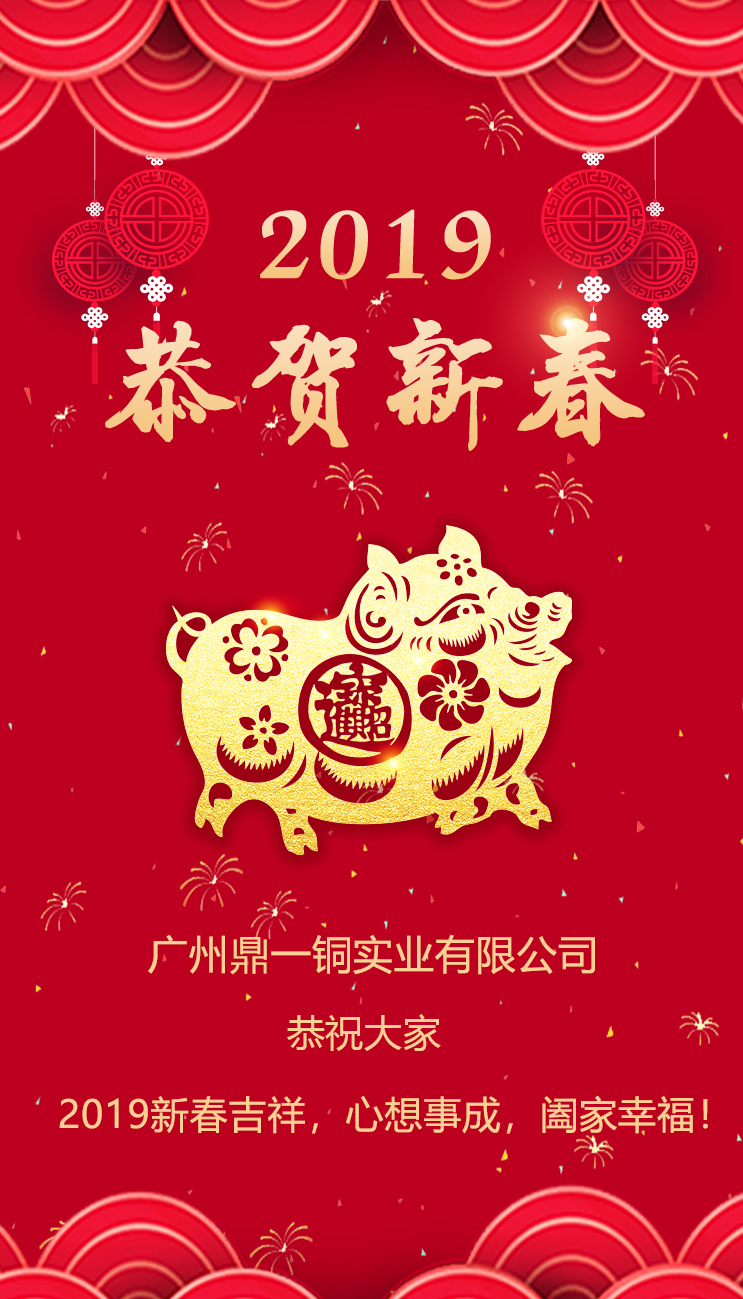 豬年鼓點(diǎn):一通開(kāi)心,兩通吉祥,三聲和諧,四串歌唱,五谷豐登,六面頌揚,七(妻)賢子孝,八方回響,久久安康!祝您豬年順利,幸福閃亮!廣州鼎一銅實(shí)業(yè)有限公司全體員工恭祝大家新春吉祥,心想事成,闔家幸福!